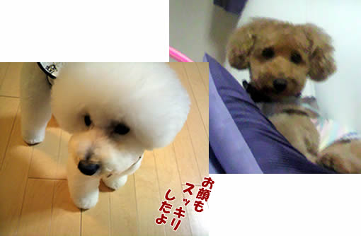 真っ白になったコロと、足が長く見えるようになったチョコ。