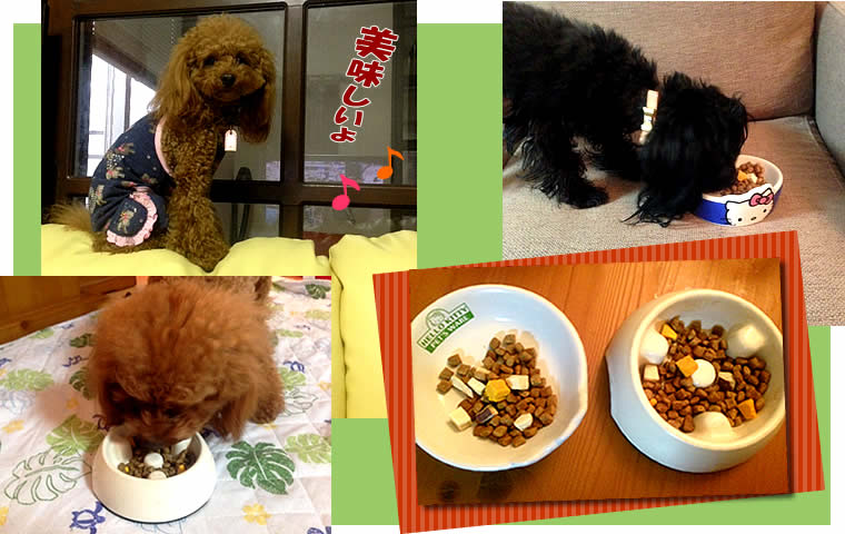 ドットわんのご飯でアレンジして作ったお食事を嬉しそうに食べてますね。