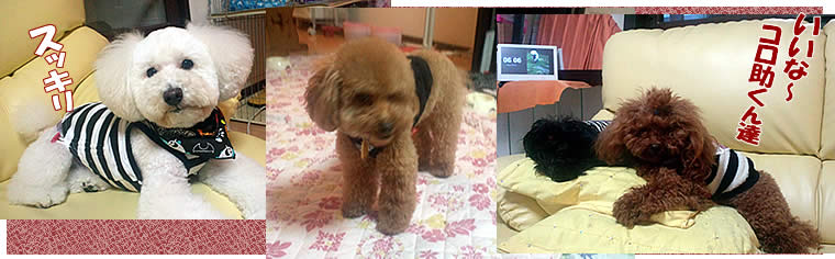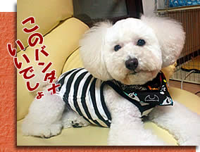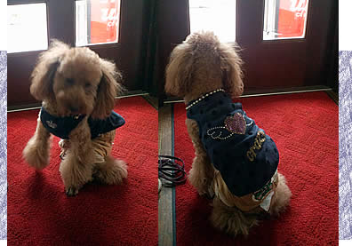トリミング行けない代わりに、新しいウェアとちょんまげでそれまで我慢してもらいます。