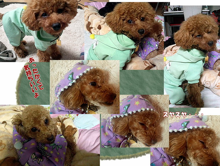 クッキーと亜依ちゃんが着ているパジャマは、アイドック i Dog のリンネ。